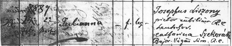 Details of the family of Julie Lison and Louis Paulik have been gathered from the public documents they left behind. We know that Julianna Lisoňová was born in Levoča on February 29, 1889 and baptized on March 2nd, the legitimate daughter of Jozef Lisoň, room painter from Levoča, a Roman Catholic, and Katarína Sekeráková from Bajerovce in Šariš, a Greek Catholic. |